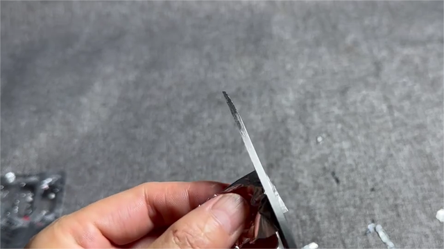 2,找一个药票盒上的锡纸,如果没有药票盒,家里的锡纸、烟盒或奶粉盖上的锡纸都可以派上用场。用剪刀把锡纸剪成小片,然后重点剪剪刀的刀刃前端、中端和后端,每个部位剪几十下。通过这样的摩擦,可以有效地去除刀刃上的锈迹和钝化层。