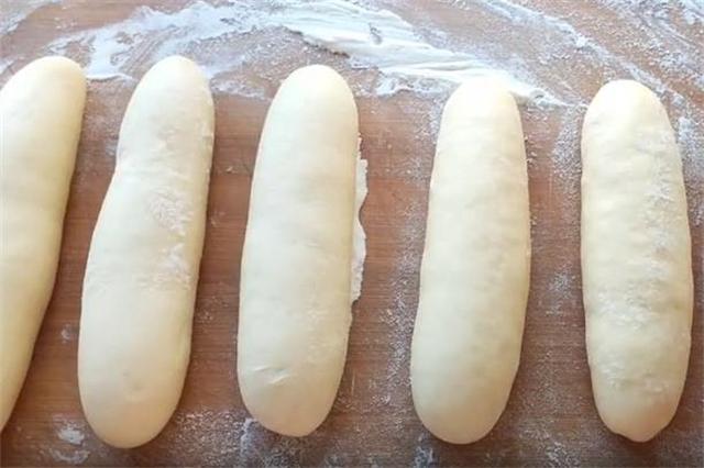3.然后把面剂揉成长条形,一定要揉光滑揉平整,然后沾一些干面粉,盖上保鲜膜二次醒发15分钟,醒发至像这种体积明显变大,拿起来轻飘飘的就可以。