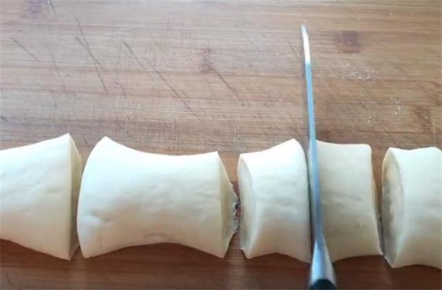 2.把发好的面揉搓排气,一定要多揉一会儿,排净空气,这样二次醒发的时候气孔才均匀,再搓长条分成小面剂。