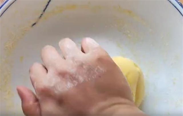2.然后分次加入300克左右的面粉,直至把它揉成一个中等软硬的光滑面团。