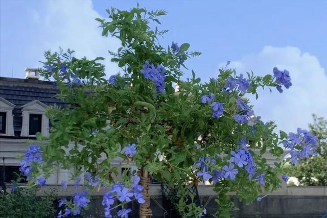 铁线莲通常一年可以开放两次,夏季高温时期会进入休眠状态,这时叶子会逐渐发黄、枯萎,也就是进入“假死”状态,而到了8月下旬就可以重新恢复正常生长状态了。如果大家想要扦插繁殖铁线莲,建议一定要保障温度高于20℃,所以要趁早扦插,这样才能保障快速成活。 蓝雪花