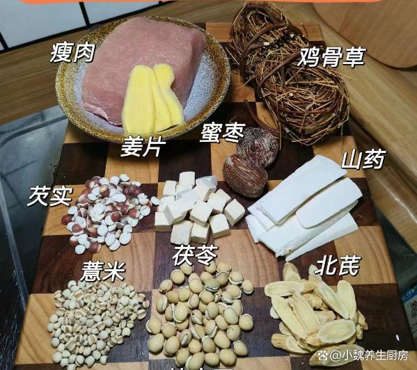进入阳春三月,四月马上就要来到了,气温开始回暖了,各地出现绵绵的细雨,雨水过后就是升温,地表的水分全部被蒸发,空气的水分会很多,全部挂在墙壁和屋顶上,空气的湿度会非常差。由于雨水增多,湿气会入侵我们的身体,从而导致病毒的滋生,引发关节炎和风湿病。南方人应对湿气,有很多不错的食疗方,一定要保证室内空气流通,避免长期处于潮湿环境,多参加锻炼,调整好我们的饮食结构,平常可以尝尝这款祛湿汤——鸡骨草芡实薏米瘦肉汤,薏米和芡实是祛湿的“中药材”,搭配一起炖汤喝,发挥其最大的营养价值,内行人经常吃它。湿气最怕喝“这汤”,春天要经常喝,祛湿排毒,无病一身轻松。  【鸡骨草芡实薏米瘦肉汤的详细做法】 准备一些食材:选购新鲜精瘦肉半斤(精瘦肉是只有瘦肉的部分,肉质非常鲜嫩,可以做成很多美食,煲汤也非常合适),鸡骨草60克左右,干山药80克左右(干山药是新鲜山药经过干制后的食材,食药两用,具有补肾护肝的作用),生姜一大块,几个蜜枣,冷水和温水少许,茯苓40克左右,选购一小碗薏米,芡实20克左右,扁豆35克左右,料酒几勺,北芪少许,少许食盐,一丢丢胡椒粉,其他佐料。 详细制作顺序: