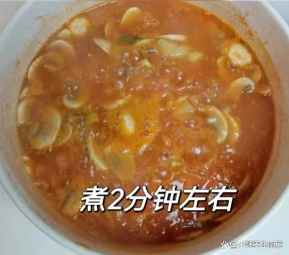 步骤4:锅底提前烧热,加上食用油或猪油,放入一些葱花和姜末,用锅铲快速煸炒出香味。 步骤5:倒入一些番茄块,加上一勺番茄酱,用锅铲按压出汁水,迅速翻炒几下,倒入一些口蘑,加上适量温开水焖煮。