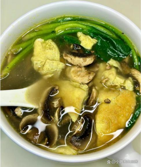 步骤4:倒入一些鸡蛋丝,加上适量温开水,盖上锅盖大火炖煮,最后下入一些菠菜,将其烫到变软。 步骤5:加上一小勺味极鲜,加上鸡精,食盐和胡椒粉来调味,关火焖煮一会儿,这款菠菜鸡蛋丝口蘑汤就制作完成了。 菠菜鸡蛋丝口蘑汤的烹饪小贴士:菠菜鸡蛋丝口蘑汤是一道色香味俱佳的家常汤品,其独特的口感和营养价值深受人们的喜爱。在烹饪过程中,掌握一些关键的小贴士,能让这道汤品更加美味可口。首先,选用新鲜的食材是成功的关键。菠菜应选用色泽鲜绿、叶片厚实的品种,口蘑则要挑选肉质肥厚、无异味的个体。鸡蛋则最好选择新鲜、无异味的,这样的食材才能保证汤品的口感和营养价值。其次,烹饪过程中要注意火候的掌握。菠菜和口蘑都是易熟的食材,因此在烹饪时要保持中火,避免大火煮烂食材。在加入鸡蛋丝时,要迅速搅拌,使鸡蛋丝均匀分布在汤中,避免粘连成块。此外,汤品的口感和味道也与调料的使用密切相关。在烹饪过程中,可以适量添加盐、胡椒粉等调料,提升汤品的味道。同时,也可以根据个人口味加入一些鸡精或味精,增强汤品的鲜味。最后,在烹饪完成后,可以撒上一些葱花或香菜作为装饰,增添汤品的色彩和香气。这样一道色香味俱佳的菠菜鸡蛋丝口蘑汤就完成了。 总之,烹饪菠菜鸡蛋丝口蘑汤时,注意选用新鲜食材、掌握火候、合理使用调料,就能轻松制作出一道美味可口的家常汤品。无论是作为晚餐的主菜,还是作为午后的一道轻食,都能让人食欲大增,回味无穷。你们有没有喝过这款菠菜鸡蛋丝口蘑汤吗?(文中的配图都出自网络)(www.ws46.Com)
