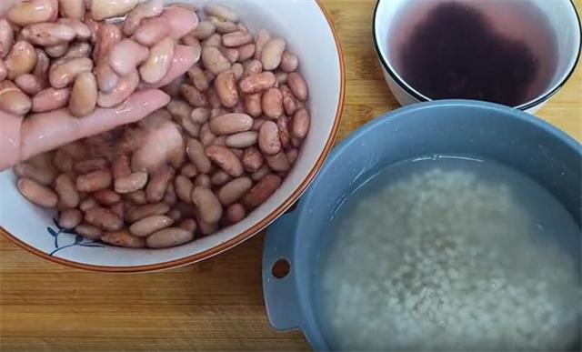 1.今天和大家分享一个做法相对简单的粗粮粘包的做法,低卡低脂,是减肥必备的主食,也适合血糖高的人食用,首先我们把芸豆或者是红豆、麦仁、黑米、燕麦等自己喜欢的粗粮浸泡一宿。