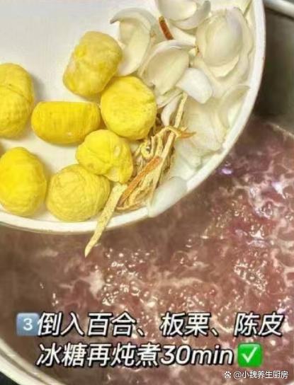 春季已经来到了,气温有了明显回升,阳气升发,正是我们最需要能量的时候,一日三餐都不能太马虎,尽量要少吃太油腻,平常多喝一些暖和和的粥品。女性上了年纪,就越来越爱美,平常气色太差,脸色会出现长斑,肌肤会非常暗沉,这个时候需要补充气血,延缓肌肤的衰老。今天准备用红豆,板栗和百合制作一款粥品——板栗陈皮百合红豆粥,简单煮一锅,粥品非常浓稠,为身体提供能量。红豆和它是绝配,等于“补血王”,暖胃健脾,补气血,脸色更红润。  【板栗陈皮百合红豆粥的详细做法】 食材明细:挑选陈皮12克左右(陈皮是橘子皮晒干后得到的药材,陈皮既可以用于泡水,煮粥和煲汤都可以加入一些,平常可以多囤一些),板栗若干个(板栗又叫栗子,属于高淀粉的食材之一,色泽金黄,口感粉糯,老少皆宜,营养价值很高,用来煮粥很不错),新鲜百合50克左右(百合是一种“失眠克星”,食药两用,缓解疲惫的症状,预防失眠的作用),选购一小碗优质红豆(或者用赤小豆替代,红豆是五谷之一,多吃红豆能够补气血,暖胃驱寒,让身体更强壮),冰糖或红糖少许,清水少许,其他。 详细制作顺序: (www.ws46.com) 第一步:提前准备好红豆,鲜百合,陈皮,板栗和其他食材,先把鲜百合用清水洗干净,去掉一层半透明物质,放在一边备用。 第二步:将红豆清洗几遍,放在容器制作,加上适量冷水浸泡,提前浸泡一晚上,或者放在冰箱冷藏储存,节省煮红豆的时间。第三步:将陈皮温水泡发,洗净切成细丝,板栗顶部切一个口子,用工具将其开口,去壳撕掉一层白色的物质,准备好其他食材,开始制作这道板栗陈皮百合红豆粥。 第四步:提前准备好一个炖锅,锅中放入泡发好的红豆,加上适量清水,盖上锅盖大火炖煮。 第五步:中小火炖煮20分钟,下入板栗,百合和陈皮,中途也可以加上清水,用勺子迅速搅动,避免粥品煮糊锅了。第六步:放入一些冰糖,也可以丢入一些枸杞子,小火焖煮几分钟即可,这款板栗陈皮百合红豆粥就制作完成了。 板栗陈皮百合红豆粥的小贴士:在准备和烹饪板栗陈皮百合红豆粥的过程中,有几个小贴士能帮助你提升粥的口感和营养价值。首先,选择优质的食材至关重要。红豆应选饱满、色泽鲜艳且无异味的;板栗要选皮薄肉厚、无虫蛀的;陈皮要选用香气浓郁、色泽自然的新会陈皮;百合则应选用色泽洁白、瓣大肉厚的。其次,红豆在煮之前最好提前浸泡数小时,甚至一夜,这样可以使红豆更易煮烂,释放出更多的营养成分。同时,煮红豆时不宜用大火,以免红豆煮破,影响粥的口感。再者,陈皮的使用也有讲究。陈皮在烹饪前最好用温水浸泡一会儿,以去除表面的灰尘和杂质。在粥快煮好的时候,再将陈皮加入,这样既可以保持陈皮的香气,又不会使其过于苦涩。 最后,百合的烹饪时间要掌握好。百合煮的时间不宜过长,否则容易失去营养和口感。最好在粥快煮好的时候,将百合加入,稍微煮一下即可。此外,煮粥时火候的控制也非常重要。建议使用中小火慢慢熬煮,这样可以使红豆和板栗的营养成分充分释放出来,同时使粥的口感更加细腻。 网友们,你们是否掌握这款板栗陈皮百合红豆粥的正确做法吗?(文中耳朵配图都出自网络)
