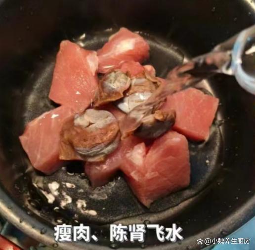 第三步:陈肾放在容器里,加上适量清水泡一泡,刮掉表面的脏东西,洗净备用。第四步:将西洋菜切掉根部,掐掉不新鲜的叶片,全部放在容器里,加上适量食盐和清水,清理掉西洋菜叶片的脏东西,陈皮温水泡发,刮掉白色的物质,准备好其他食材,开始制作这道西洋菜陈肾瘦肉汤吧。 第五步:锅中加上适量清水,放入瘦肉块和陈肾,加上几勺料酒,放入一些姜片,焯水处理去腥,备用。 第六步:准备好煲汤的砂锅,锅中放入瘦肉块和陈肾,放入南北杏,无花果和蜜枣,丢入一些生姜片,加上适量冷水,盖上锅盖大火炖煮。 (www.Ws46.com) 第七步:调到大火炖半个小时,继续小火煲一个小时,让汤品煮至变色,最后放入一些西洋菜烫一烫,最后调入少许胡椒粉和食盐,焖煮一小会儿,关火盛出,这道西洋菜陈肾瘦肉汤就制作完成了。 西洋菜陈肾瘦肉汤是一款广东人爱喝的靓汤,被称为广东省的“省汤”,选用西洋菜,瘦肉和陈肾制作而成,食材互补,营养鲜美,汤品非常清甜甘香,清肺热,润燥去火,让你春季过得舒坦。 网友们,你们是否掌握这款西洋菜陈肾瘦肉汤的正确做法吗?(文中的配图都出自网络)