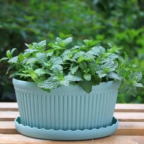 3、薄荷 本来我是想将它种在厨房的窗台上的,但是在分完一盆后,我又搬了一盆放在浴室里,结果发现它长得还挺好的。要知道,天蓝草如果种在地面上,是会受到伤害的,毕竟天蓝草的繁殖力很强,生命力也很强。所以放在浴室里再合适不过了。