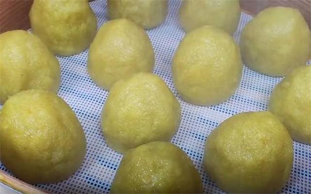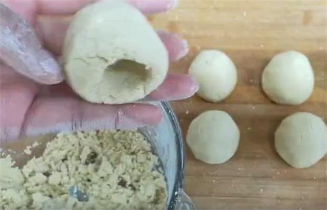 3.然后像这样把它团圆,中间抠出一个窝,这样更容易蒸熟,用这个方法也可以直接按扁下锅煎,做出来的也非常的好吃。