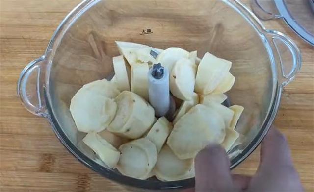 1.首先我们把红薯洗净去皮切成小块,放入料理机。摘自: www.ws46.com