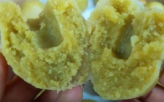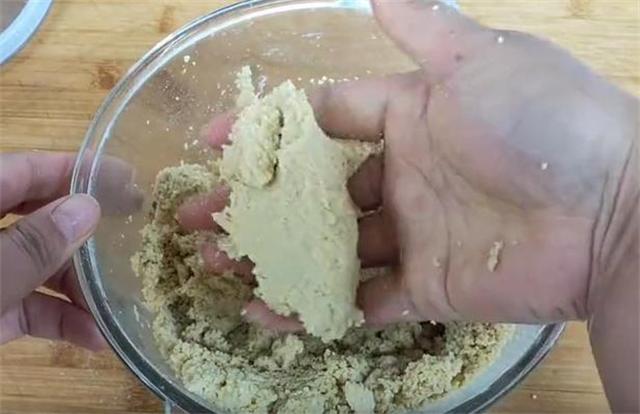 2.然后加入适量的玉米面,也可以加糯米粉,口感会更好,这个粉质的可以先少加一些,防止我们打出来的粉太干,攥不到一起,最后我们打出来这个湿粉的话,用手能够轻易的攥成团就可以。