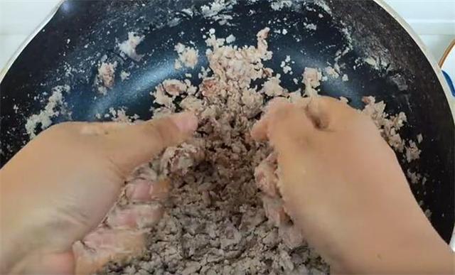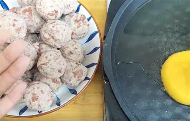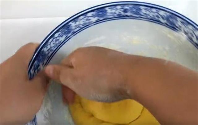 4.这个面可以不用醒,直接取一小块,把它按成薄片,包入芸豆馅,团圆之后再把它按扁下锅就可以。