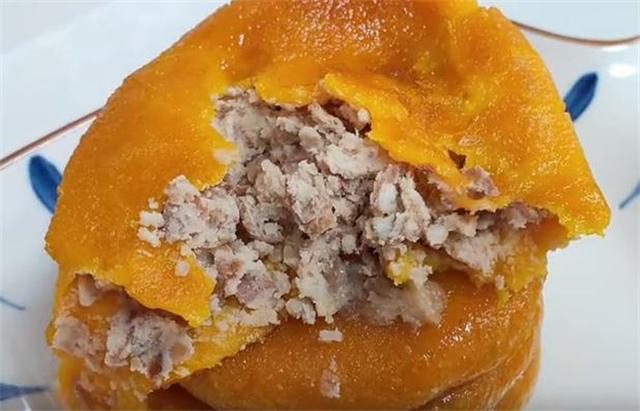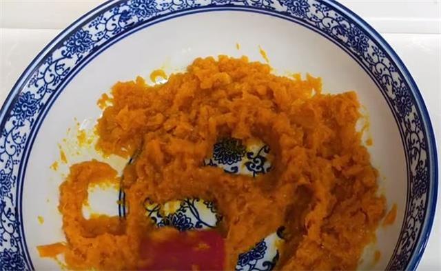 2.接下来准备一块南瓜,切成一小块,蒸熟捣成泥。