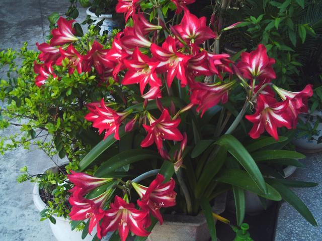 ②朱顶红 朱顶红,相信很多人都知道,因为我们这边很多家庭都种植着朱顶红,只不过这一片的花朵却是鲜红的,而且还是一朵一朵的,十分的喜庆。 而洋朱顶红的引进,也让它的名声大噪起来,从一朵一朵,变成了成串的开花,色彩也从单一的,到多色,再到条纹,再到各种新的色彩。 洋朱是一种很好的装饰植物,品种也很多,很容易吸引眼球,也正因为如此,它的价值才会比较高,因此,很多人并不在意这些,只是想要尽可能的收集到更多的东西。