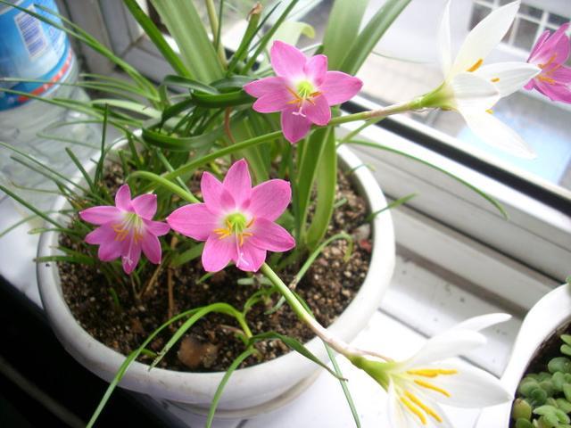 ④风雨兰 那是一种类似于大葱的植株,但是长得极为美丽,而且它的根茎,跟大蒜有些相似,所以非常好种,只要把“蒜头”按进泥土里,就可以了。 它的名字叫做‘风雨兰’,与一般的花卉不一样,它无惧风吹雨打,只有一盆一盆的开花。(www.ws46.com) 如果是新手,又不喜欢麻烦,那就选风雨兰吧,这是一种耐旱耐高温的花卉,但是对光照的需求比较大,在浇水的时候一定要控制好水。