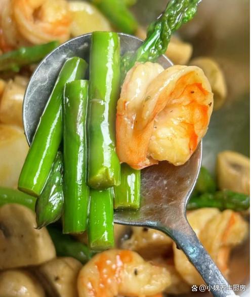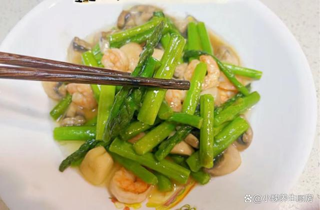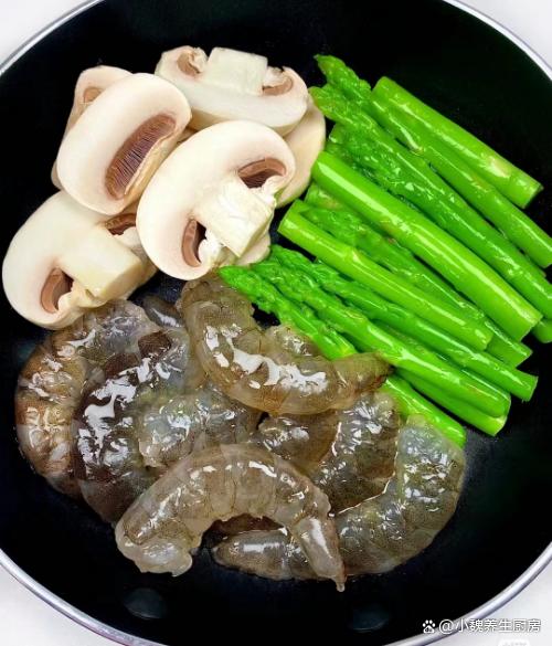 进入3月的最后一周,时间过得太快了,春季已经过去很长时间,雨水和阳光非常充沛,很多野菜和野草都长出来,还有很多刚刚冒出嫩尖的蔬菜,比如说芦笋和春笋。芦笋是春天最受欢迎的蔬菜之一,今天准备搭配口蘑和虾仁制作一道菜肴——芦笋虾仁炒口蘑,小白都能够学会,别不懂吃。春季,遇见“这菜”别错过,低脂低卡,营养美味,再贵也要吃。  【芦笋虾仁炒口蘑的详细做法】 食材清单:选购新鲜芦笋一小把(芦笋又叫绿芦笋,是春季刚刚上市的蔬菜之一,富含大量的硒元素和维生素成分,低脂健康,可以搭配鸡蛋,肉类和虾一起吃,为身体储备各种能量),选购新鲜口蘑150克左右,食用油少许,挑选新鲜大虾250克左右(大虾是最受孩子欢迎的食材,高蛋白和高钙质,虾肉非常鲜嫩,可以搭配许多食材吃,再贵也要多吃),生粉少许,食盐少许,生抽和蚝油若干,水淀粉少许,鸡精和胡椒粉少许,料酒少许,其他调味品。 正确制作顺序: 第一步:提前选购好芦笋,大虾和口蘑等食材,先把芦笋的根部切掉,起到顶部的刺头,反复清洗干净,切成长度相同的段。 第二步:锅中煮一些清水,滴入少许食用油,加上一勺食盐,倒入芦笋焯烫一会儿,捞出放入凉水浸泡,控干表面的水分,备用。第三步:先把口蘑放在碗中,加上少许清水,调入一勺食盐,搓洗掉菌盖的脏东西,切掉菌柄部分,洗净切成若干小块,备用。第四步:将大虾剥掉虾壳,虾线用牙签挑出来,只保留虾肉的部位,用料酒和食盐腌制,放置12分钟左右。