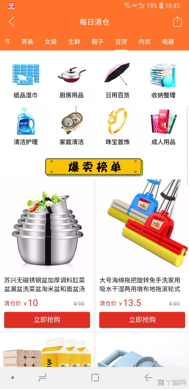 (4)九块九特卖频道:99每日抢新、9.9[**类目]专题推送、9块9竖条