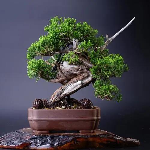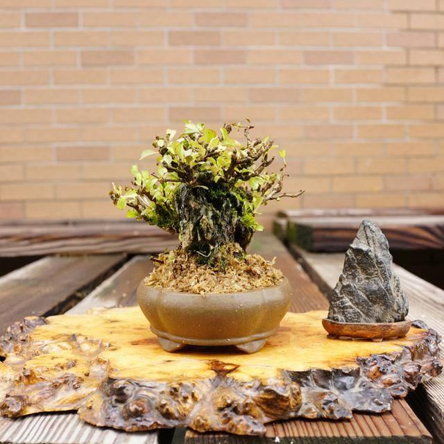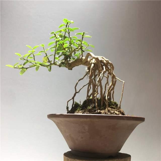 3、根部的培育 有些桩材的根部天生出根不理想,整形也无法完全达到完美根部的要求,就需要动下刀了,在需要出根的部位,用刀片削下一片捎带点木质的树皮,伤口用苔藓覆盖保湿即可。 培育出优质的根部,还可以使用根接之法。就是用符合根部要求的相同品种的树木,靠接在出根的部位,等生长愈合之后,把树木去除即可。 如果还是帮不到你的盆景根部,还可以使用高空压条法。就是在你的桩材生长旺盛之时,用此法来重新生长根系,后面使用冲根之法,慢慢地露出根系,接受光照,因为裸露的根系生长会变快,很快就能得到理想的根系。