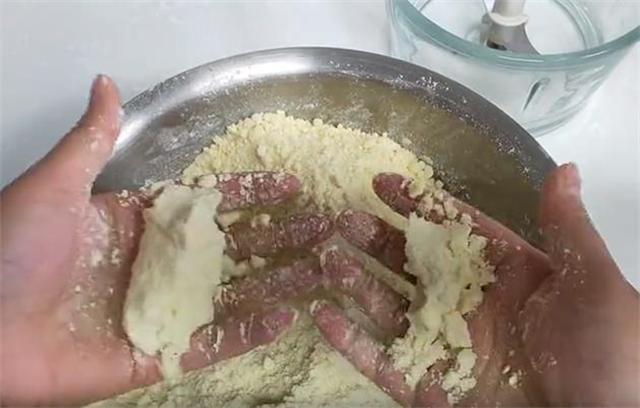 1.准备大黄米粉三斤,清水600毫升,分次少量加入,边加边搓,最后得到一个可以攥成团的这种程度的湿面粉,这个面粉一定要加水,要不然做不成年糕,特别容易夹生。
