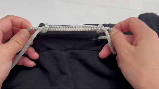 然而,这些松紧裤上通常都设计有两根绳子,这两根绳子并非多余,而是具有实用的功能。如果你今年买了一条刚好合身的裤子,但明年因运动或饮食等原因体重有所下降,这时这两根绳子就能派上用场了。它们可以像腰带一样帮助你收紧裤腰,避免裤子因为过松而失去原有的型态,影响穿着效果。 接下来我将向大家介绍两种简单易学且实用的系绳子的方法。这两种方法不仅可以自由调节裤子的松紧度,还能起到装饰作用,让裤子看起来更加时尚有型。
