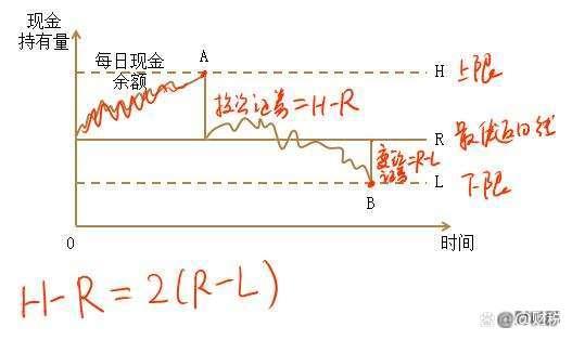 其中,*表示现金余额的标准差,b表示交易成本,i表示每日的机会成本率,L是现金持有量下限。 现金持有量上限与回归线之间的差额是回归线和现金持有量下限的2倍。 现金持有量上限H=3R-2L