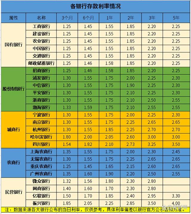 哪家银行的存款利率相对较高?按照性质来分,我国的商业银行可以分为国有银行、股份制银行、城商行、农商行、民营银行等类型。不同类型的银行,存款利率可能大不相同,同类型的不同银行,存款利率可能也会不一样。 下表为各银行的存款利率情况: