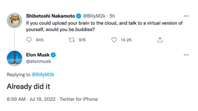 实际上,“数字生命”不止是一种科学幻想。电影之外,数字人、AI、数字孪生、量子计算、脑机接口......与此相关的初级技术已经来到我们身边。 硅谷钢铁侠:“我与虚拟的自己交谈过” 所谓“数字生命”,就是指将人类的意识数字化,上传到云端,或者是运行在某个机器人的大脑中,让人的意识在虚拟的服务器中,持续生命状态。 据华尔街日报报道,一些硅谷大佬正在探索数字化永生。特斯拉CEO埃隆·马斯克正是其中之一。 2016年,被称为“硅谷钢铁侠”的马斯克成立了Neuralink脑机接口公司,并已经开展多项研究,去年7月,马斯克曾在推特表,已将自己的大脑上传到云端,并且与自己的虚拟版本交谈过。