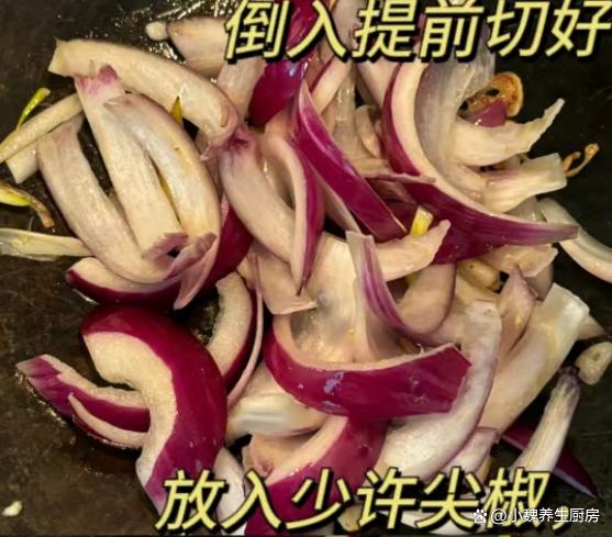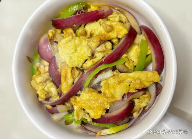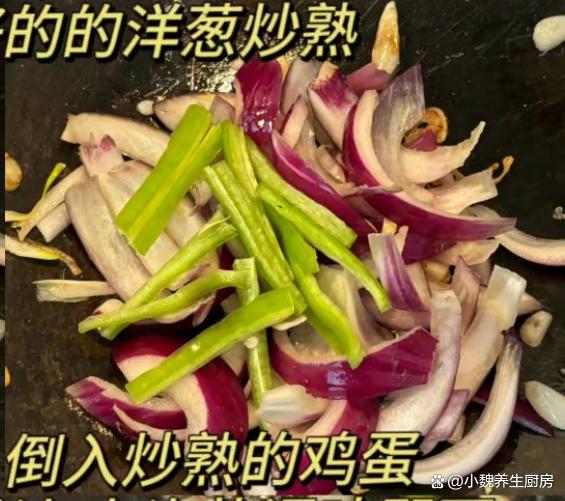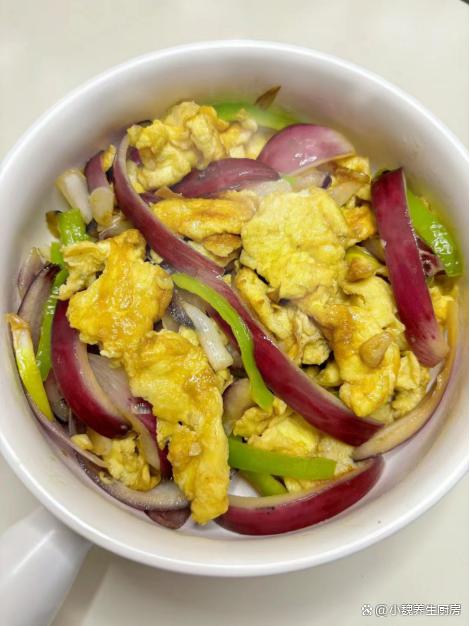 已经迈入到3月份的后半段日子,春季到了早期,阳春三月,万物复苏,春回大地,感觉大地换上新的“春装”,绿油油的景色非常漂亮,让人美不胜收。春季是一年最重要的日子,是非常重要的“养生期”,人到了40岁以后,血管堆积大量的毒素,身体负担很大,这个时候可以多吃一些青椒,洋葱和韭菜,对身体有很多好处。今天准备用青椒,洋葱和鸡蛋制作一道快手菜——青椒洋葱炒鸡蛋,成本才几块钱,比猪肉还受欢迎,好处多多。春季,宁愿少吃猪肉,也要常吃这菜,营养又美味,血管更通畅了。  【青椒洋葱炒鸡蛋的食谱解析】 准备一些食材:选购几个土鸡蛋(土鸡蛋是一种很平价的蛋类,鸡蛋的蛋白质含量高,烹饪方式非常多,炒着吃最省事,搭配辣椒和洋葱是绝配,比大鱼大肉更好吃),冷水少许,少许水淀粉,一小勺白醋,食用油若干,几个青椒或辣椒,新鲜紫皮洋葱一个(洋葱是高维生素的蔬菜,被称为“血管清洁工”,一般可以作为配菜来吃,帮助清理血管的毒素),生抽少许,半勺蚝油,少许食盐和白糖,其他调味品。 详细制作顺序: 第一步:提前选购好青椒,洋葱和土鸡蛋等食材,-先把大蒜头去皮,切成若干蒜片,备用。第二步:先把青椒洗净去掉蒂,斜切成一些细丝,紫洋葱从中间切开,撕掉一层洋葱皮,切成若干细丝,洋葱丝用盐水泡一泡,最后控干表面的水分,备用。第三步:提前准备好一个空碗,碗中打入几个土鸡蛋,用筷子迅速搅散,调入一丢丢料酒和水淀粉,加上食盐,滴入一些香油,把蛋液搅拌均匀。 第四步:锅底加上少许食用油,油温烧热乎以后,滑入调好的鸡蛋液,蛋液小火煎至定型,用锅铲迅速翻炒,盛出装盘,准备好辣椒和洋葱丝,开始烹饪这道青椒洋葱炒鸡蛋。