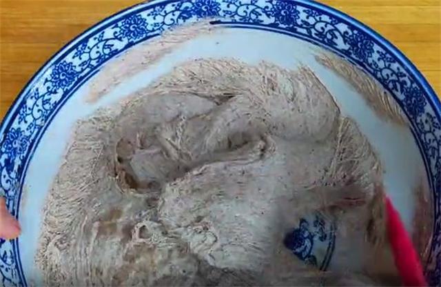 5.然后像这样把它缠起来倒入清水,千万不要从上面倒水,这样会影响饧发。