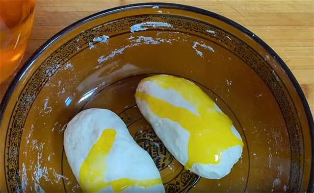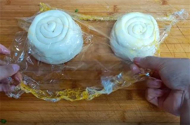 1.准备300g面粉,盐3g,温水180毫升,按照比例和配方和面,揉光滑后分成2个面剂,抹油密封饧面,然后我们可以提前在晚上把这个面和好,放冰箱冷藏醒发一夜,这样早上起来既快又节约时间。