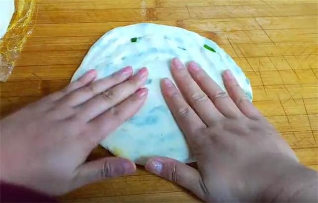 4.底部压住,生坯就做好了,可以盖上保鲜膜松弛几分钟,这样饼内部会更柔软。