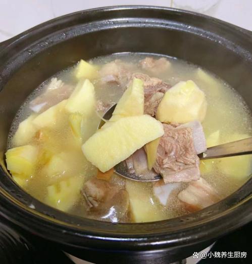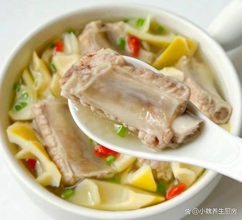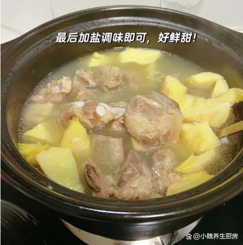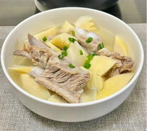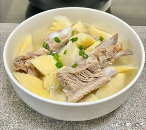 第六步:盖上锅盖大火焖煮,改小火炖1.5个小时,炖汤的火候非常关键,加上胡椒粉和食盐来调入,也可以丢入枸杞子,撒上葱花点缀即可,这道春笋排骨汤就制作完成了。 春笋排骨汤是一款春季必喝的靓汤,尤其是南方人爱喝,春笋本来就很鲜美,搭配排骨来煲汤,鲜美倍增,滋补肝肾,养肝护肝,调理我们的肠胃,好处多多。 摘自: www.ws46.com 网友们,你们是否掌握这款春笋排骨汤的正确做法吗?(文中配图都出自网络)