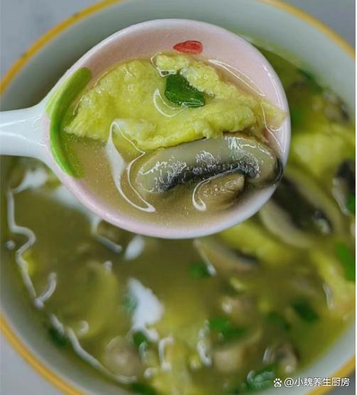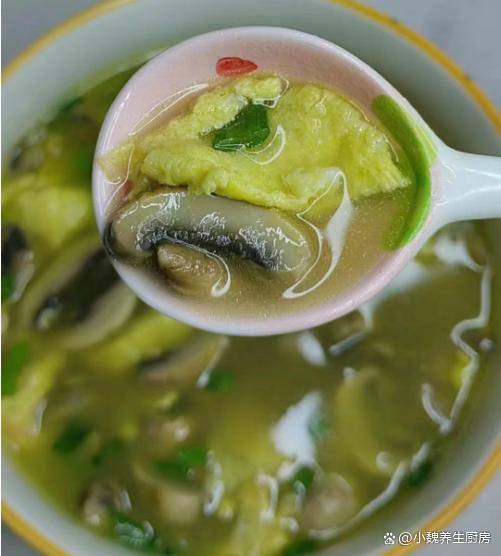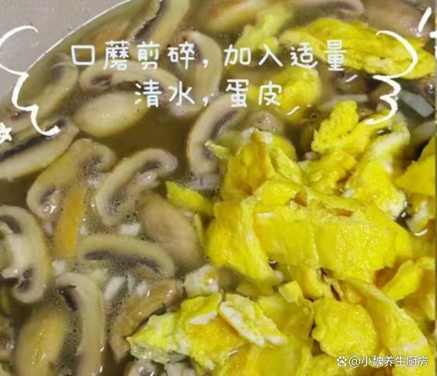 5:锅底继续烧热,不需要加油,口蘑铺在锅底,将里面的汁水煎出来,用剪刀剪成片状,加上少许猪油和葱姜煸炒。 6:加上足量的开水,倒入煎好的鸡蛋块,最后放入一些虾皮,出锅前调入胡椒粉和食盐,撒上一些葱花即可,这款口蘑虾皮鸡蛋汤就烹饪完成了。 口蘑虾皮鸡蛋汤是一款色香味俱全的家常汤品,选用新鲜口蘑,虾皮和鸡蛋烹饪而成,发挥食材的优点,汤品巨鲜美,虾皮的钙含量不输牛奶,用来煮汤更容易吸收,补足能量,个头越长越高。 网友们,你们是否喝过这款口蘑虾皮鸡蛋汤呢?(全文的配图都出自网络)