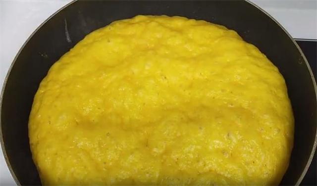 4.因为这个面糊比较凉,二次发酵慢,所以我们把平底锅稍微加热至温热,然后关火刷少许的油,倒入面糊摊平二次发酵,由于锅是温热的,二次发酵大概10到15分钟左右就可以,发酵到体积明显变大,然后我们盖上盖子,开最小火再焖5分钟到8分钟左右。趁这个二次发酵的过程,我们可以去洗漱忙一些别的,是不耽误时间的。