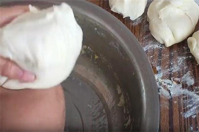3.醒好的面用我们用虎口把它掐断,分成小面剂,大家可以看到我这个面是特别的软的,只有这样的面做出的饼才会柔软不硬。