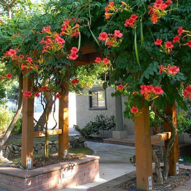 1、凌霄花 凌霄花,是所有人都喜欢的植物,盆栽也无法衬托出它的鲜艳色彩,唯有地栽,才能将这朵花的美,衬托的淋漓尽致。在张馨予的大庭院里都能见到凌霄花,足见其受人喜爱。 但是,再过几年,你就有苦头吃了。因为,你种在院子里的凌霄花,很有可能已经长在了外面。就算你把树砍断了,如果不把树根挖出来,明年还会有更多的事情发生。甚至,在未来的岁月中,你的院子里,也会源源不断的长出一些凌霄花。