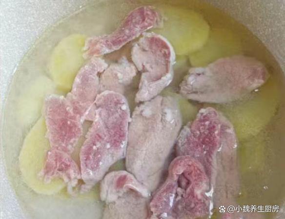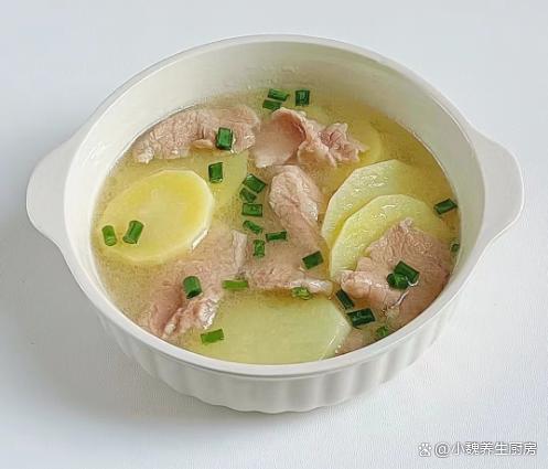 时间过得特别快,冬天过完就迎来早春,春天的初期还有一点凉爽,但是经过一场春雨以后,天气会逐渐升温,后面基本上都是晴天,雨水和阳光滋润万物,很多植物和庄稼都都冒出嫩尖,许多花儿也开放了,感觉春天的气息了。春季来临以后,很多人只知道吃山珍海味,每天吃也会腻,影响一家人的胃口。今天为网友们分享一道土豆的新吃法——土豆片滑肉汤,土豆和猪肉是绝配,不蒸不炒,经过简单的烹饪处理,汤品很受欢迎,赶快学起来吧。土豆遇到它,才知啥是绝配!春季要敞开吃,营养美味,别不懂吃。  【土豆片滑肉汤的正确做法】 选购一些食材:选购300克新鲜大土豆(土豆又叫马铃薯,是一种非常便宜的蔬菜,几块钱一斤,土豆富含大量淀粉和营养物质,土豆可以做成炸土豆片,土豆泥,凉拌土豆丝或土豆饼等等,土豆吃起来非常美味),少许辅食油,食用油少许,玉米淀粉少许,半勺料酒,酱油一勺,清水和温开水少许,食盐少许,一小勺胡椒粉,香葱和生姜少许,选购半斤新鲜猪肉里脊(里脊肉丝猪肉的精华部位,肉质非常红润,口感非常嫩滑,可以做成许多美食,用来煮汤也很不错),其他调味品。 详细制作顺序: 步骤1:提前选购好大土豆和猪肉里脊等食材,先把土豆表面泥土去掉,用刨子去掉外皮,反复清洗干净。步骤2:土豆切成厚度相同的片,土豆放在容器里,加上少许清水,倒入土豆片泡一泡,去掉土豆片的淀粉,最后要控干表面的水分。步骤3:先把猪肉里脊反复清洗干净,将猪肉顺纹切片,瘦肉片也可以用力摔打,瘦肉片放在容器中。