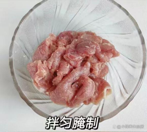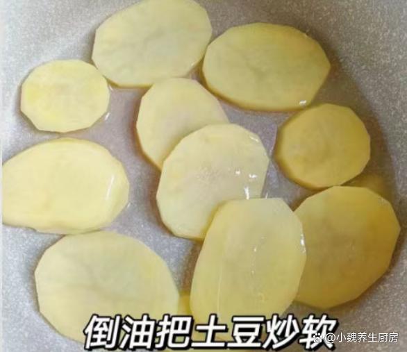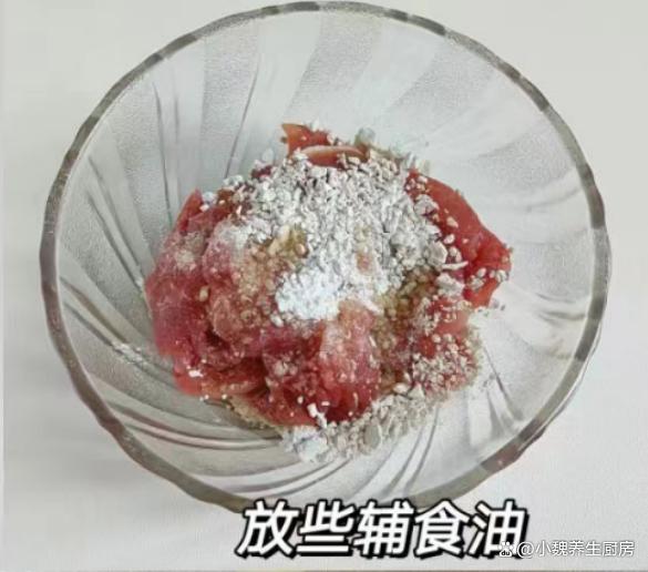 步骤4:加上一些葱姜水和料酒,调入少许玉米淀粉和食盐,加上半勺酱油,加上少许辅食油,锁住肉片的营养,让瘦肉更加嫩滑。 步骤5:另外起锅,锅底提前烧热乎,加上适量的食用油,土豆片放入锅中,小火煎至变软。