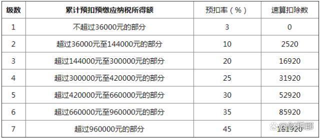 累计预扣预缴应纳税所得额=本年度累计工资薪金所得-5000元×累计月份-累计专项扣除-累计专项附加扣除-累计依法确认的其他扣除 劳务报酬所得按次(月)预缴,每次收入不超过4000元的,预扣预缴税额=(收入-800)×预扣率;每次收入4000元以上的,预扣预缴税额=收入×(1-20%)×预扣率-速算扣除数