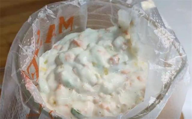 4.早上起来的时候撕开保鲜膜,用筷子搅拌排气,然后装入裱花袋。