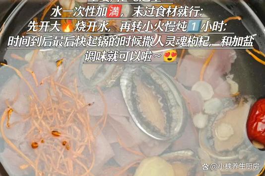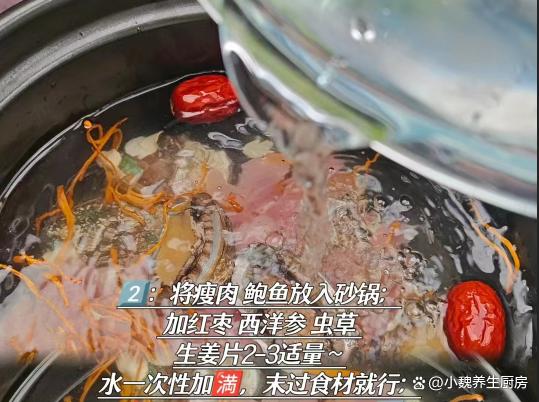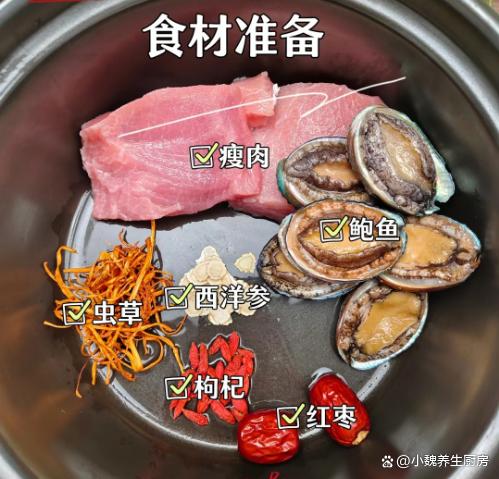 进入到1月份的最后几天,一晃眼一个月就过完了,冬天并没有过完,寒冬到了“五九天”,再过一些日子就要开春了,这个时候的天气非常冷,即将要迎来暴雪天气,会带走我们身体的热量,营养被消耗殆尽,身体缺乏营养,气色会非常差。冬天进补,不要总是吃山珍海味,喝汤更利于营养的消化,今天准备用鲍鱼和瘦肉制作一款鲜汤——虫草花鲍鱼瘦肉汤,简单易学,汤品特别鲜美,老少皆宜,好处多多。“冬天喝一汤,腿脚站稳跟”,多给家人喝这汤,补足营养增强免疫。  【虫草花鲍鱼瘦肉汤的食谱解析】 食材明细:选购干虫草花20克(虫草花是一种中药材,食疗价值很高,煲汤可以放入一些,补肾补气,保护肝脏,对我们的身体有好处),选购新鲜鲍鱼200克左右(鲍鱼是一种常见的贝类海鲜,肉质非常肥美,营养价值全面,蛋白质和微量元素高,为身体储备许多能量),西洋菜10克,选购250克新鲜精瘦肉(脂肪含量低,营养价值高,适合炒着吃或煮汤),若干个红枣,12克枸杞子,冷水和温开水少许,姜片少许,食盐若干,一小勺胡椒粉,其他。 来源: www.ws46.com 正确制作顺序: 第一步:提前选购好虫草花,鲍鱼,精瘦肉和其他食材,先把虫草花的根部掐掉,用温水泡发一会儿,洗净控干表面水分。第二步:西洋参清洗干净,几个红枣洗净去核,枸杞子也清水洗干净,生姜去皮切成若干薄片。 第三步:鲍鱼放入到容器里,加上少许食盐和清水,将鲍鱼用盐水泡一泡,冲洗干净,表面切一些口子。第四步:将精瘦肉彻底洗干净,切成若干小方块,准备好鲍鱼,瘦肉块,虫草花和其他食材,开始制作这道虫草花鲍鱼瘦肉汤。 第五步:将锅底清洗干净,砂锅中放入鲍鱼和瘦肉块,加上一些红枣,西洋参,虫草花和生姜片,加上适量清水,盖上锅盖大火炖煮,中途要撇去一层浮沫。 第六步:先开大火焖煮,然后转小火炖一个小时,中途用勺子搅动,让食材都炖至熟透,丢入洗净的枸杞子点缀。 第七步:出锅前调入白胡椒粉和食盐,搅动几下,焖煮几分钟,关火出锅,这款虫草花鲍鱼瘦肉汤就烹饪完成了。 虫草花鲍鱼瘦肉汤是一款滋补身体的靓汤,天气越来越来多喝,汤品用鲍鱼和瘦肉制作而成,搭配一些红枣和虫草花,简单炖一锅,喝起来鲜美极了,补肾补气,好处多多,不懂吃可惜了。 网友们,你们是否掌握这款虫草花鲍鱼瘦肉汤的正确做法吗?(文中的配图全部出自网络)