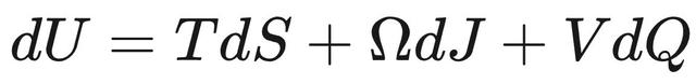而这个公式与转动物体的热力学第一定律表达式相似: