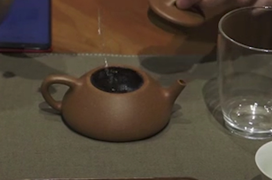 把开水淋在开水上面时,真正的紫砂壶壶身不会有明显的的水珠形成,壶身会出现吸水的情况,而假的紫砂壶壶身淋了开水会有明显的水珠滞留。 11、泡养