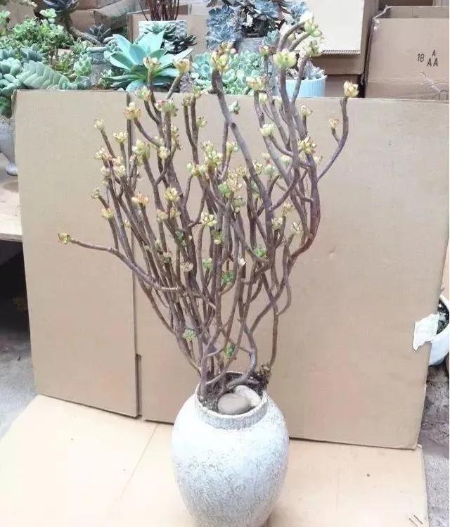 3、酥皮鸭 光是这个名字,就让人垂涎欲滴,这是一种让人看一眼就会爱上的多肉。 就拿眼前的这只鸭子来说,这只鸭子已经有二十年的历史了。我最久的一盆多肉,也不过是4年多一点的事,对于我来说,20年的时间,实在是一种“幸福”。 二十年的脆皮鸭,连枝条都没有耷拉下来,笔直的站在那里,看起来就像是一颗大树,等夏天成熟的时候,就会变成一只红彤彤的大鸭子,让人垂涎欲滴!