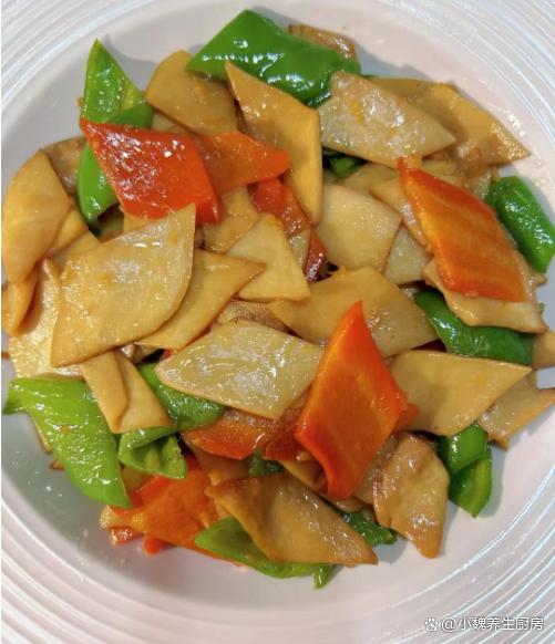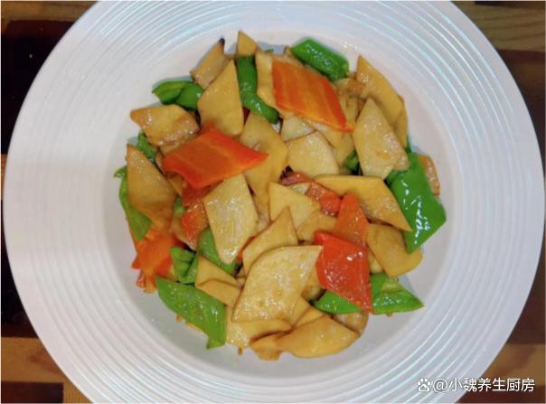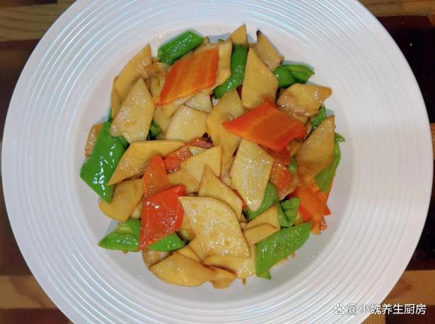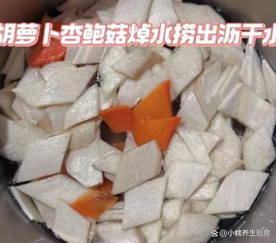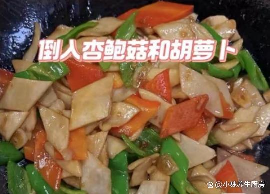 进入新的一年,马上就要迎来2月份,距离过年也越来越近了,马上要放假了,自己的空闲时间会增多,终于不用天天吃快餐了,每天在家都能够做饭吃,每天都不会重样。到了冬天的末尾,虽然需要进补,但是不能总是吃大鱼大肉,也需要多吃应季的蔬菜,比如说萝卜。今天准备用胡萝卜,青椒和杏鲍菇制作一道家常菜肴——青椒胡萝卜炒杏鲍菇,菜色非常好看,学会给家里人做一做吧。2月,大鱼大肉靠边站,多给家人吃这菜,营养美味,做法很简单。  【青椒胡萝卜炒杏鲍菇的食谱解析】 食材明细:选购几个青椒(青椒是一种常见配菜,色泽嫩绿,既可以起到开胃的目的,还能够改善我们的食欲),新鲜胡萝卜150克(胡萝卜是一种色泽好看的萝卜,生活中非常常见,胡萝卜的含量最高,常吃可以保护孩子的眼睛,好处多多),挑选优质杏鲍菇300克(杏鲍菇是一种个头粗壮的菌菇,菌菇的口感非常鲜嫩细腻,荤素均可以搭配,吃起来鲜嫩美味,营养又解馋),一些大蒜头,姜片若干,少许食用油和食盐,猪油渣少许,一些大蒜头,少许食盐和白糖,一小勺鸡精,生抽和蚝油少许,其他。 详细制作顺序:第一步:提前选购好青椒,胡萝卜,猪油渣和杏鲍菇等食材,先把青椒的表面洗净,去掉青椒蒂,从中间切开,切成一些菱形块,控干水分备用。第二步:先把胡萝卜反复清洗干净,切掉两头多余的部位,先切成长度相同的段,然后切成若干菱形片,不要切太厚了。第三步:先把杏鲍菇的根部切掉,菌盖反复清洗干净,杏鲍菇切成若干菱形片,用盐水浸泡一会儿,洗净捞出备用。 第四步:锅中加上适量清水,煮沸后加上一小勺食盐,倒入胡萝卜和杏鲍菇,把两种蔬菜焯水处理,一定要沥干表面的水分。第五步:将一些大蒜头去皮切成蒜片,生姜切成细末,准备好几种蔬菜,开始制作这道青椒胡萝卜炒杏鲍菇吧。