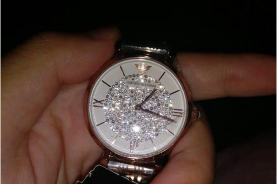 调整阿玛尼满天星手表表带时,可先将手表平展摊开,在表镜的下方垫一块软布,以防止表镜受到破损。接着在在表链上找到箭头的方向,而箭头所指的反方向是指安装的方向。 步骤二