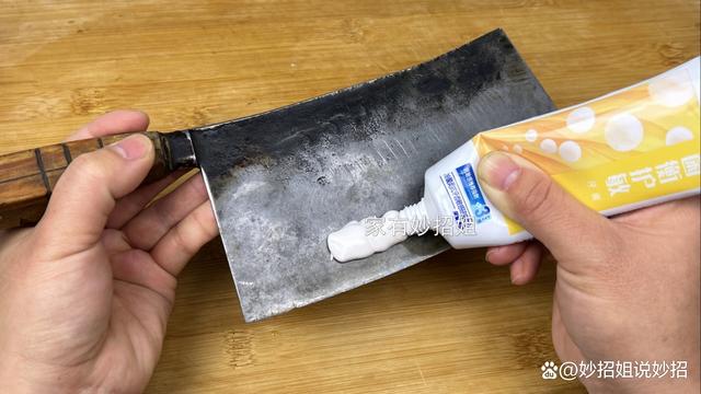 打磨菜刀的方法很简单,我们只需要利用上一点牙膏、一些食盐、一点白醋和一个平时用来吃饭的陶瓷碗就可以了。我们先在菜刀的刀面上挤一段牙膏,稍微多挤一点。然后再用纸巾将牙膏均匀的涂抹在刀面上,菜刀的两面都要涂抹到。牙膏大家都很熟悉,就是平时我们用来清洁牙齿的日用品,之所以在刀面上涂抹牙膏,是因为牙膏具有很好的清洁功能。在日常使用菜刀的过程中,难免会在菜刀上残留一些油脂或其他的杂质,而牙膏的清洁作用,就能有效地将菜刀表面残留的脏东西清洁掉,而且牙膏是膏体,还具有一定的润滑作用。