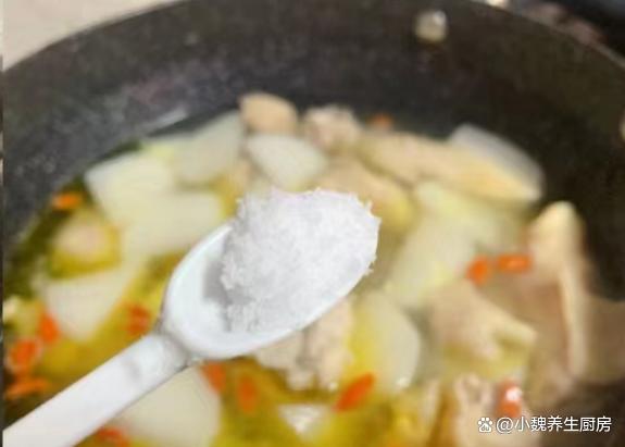 一年又一年,一晃眼一年就过完了,现在已经到了寒冬腊月,也是过春节前的一个月,冬天要过完了,春天会离我们越来越近,但是还是不能马虎,数九寒天以后,就要迎来“倒春寒”,寒冷的天气不会走远,我们还是要照顾好自己,注意增添衣物,避免被冻伤了。长辈们说“寒冬多喝汤,开春不会慌”,我们身体要想更加强壮,一定需要进补,多喝许多鲜美的靓汤,比如说这款白萝卜猪肚炖土鸡汤,简单炖一锅,喝起来超级鲜美,内行人经常喝它。寒冬进补,别忘记喝“这汤”,滋补暖胃,驱寒排毒,早食早受益。  【白萝卜猪肚炖土鸡汤的详细做法】 食材清单:选购新鲜白萝卜300克(白萝卜是萝卜家族的成员之一,经过寒冬后的萝卜更甜,但是容易被冻伤,记得不要选购空心萝卜,也可以选择青皮萝卜或樱桃萝卜,都非常适合来煲汤),老姜16克左右,选购新鲜土鸡800克(大概是半只土鸡,鸡肉的肉质鲜嫩,煲汤非常鲜美滋补,平常可以给家里人喝它),选购优质猪肚200克,冷水和温水少许,白醋几勺,面粉少许,料酒几勺,食盐少许,若干个红枣,香葱若干根,其他。 具体制作步骤: