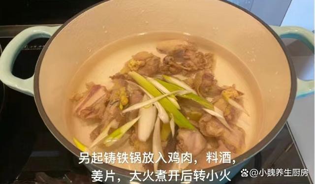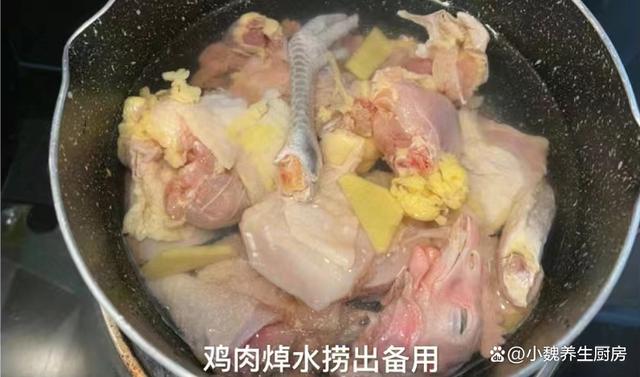 步骤6:另外起锅,锅中加上冷水足量,倒入一些土鸡块,放入姜片和葱段,把鸡肉也焯烫去腥,也可以加上料酒去腥,温水冲洗干净即可。 步骤7:准备好砂锅,锅底加上少许油,倒入鸡肉快速煸炒,放入姜片,鸡肉,白萝卜和猪肚,也可以加上陈皮和红枣等食材,记得要多加一些纯净水,这样炖出来的汤更鲜美。 步骤8:炖汤要掌握好火候,开大火煮沸,然后中小火炖一个半小时,最后丢入一些枸杞子,加上一丢丢白胡椒粉和食盐,不需要加其他调味料。 步骤9:出锅食用,这款白萝卜猪肚炖土鸡汤就做好了。 白萝卜猪肚炖土鸡汤是非常滋补的靓汤之一,许多南方人超爱喝,主要选用白萝卜,猪肚和土鸡炖煮而成,每到冬天一定要常喝,暖胃驱寒,补血补气,好处多多。