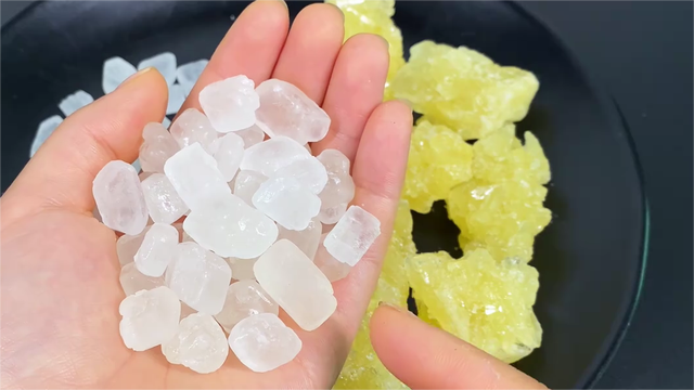 白色和黄色冰糖。许多人可能会认为,这两种冰糖除了颜色不同外,其他方面应该没有太大差别。然而,事实并非如此。 首先,让我们来谈谈白色冰糖。白冰糖经过了一系列的脱色处理,因此呈现出洁白无瑕的外观。由于其纯净度较高,糖分和甜度也相应地更为浓郁,使得它在口感上更加甜美。然而,这种甜度的提升,是以牺牲部分营养成分作为代价的。